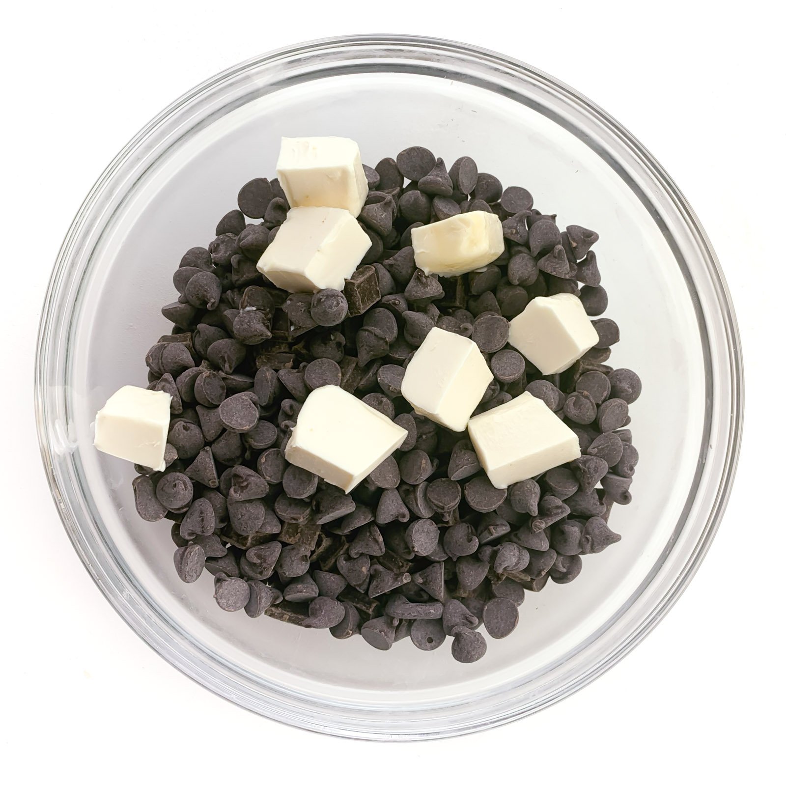 - Next, combine the chocolate chips and vegan butter (or coconut oil) in a microwave-safe bowl. Stir to ensure the chocolate chips are coated and then heat for about a minute. Stir and heat for another 30 seconds until the chocolate chips are melted.