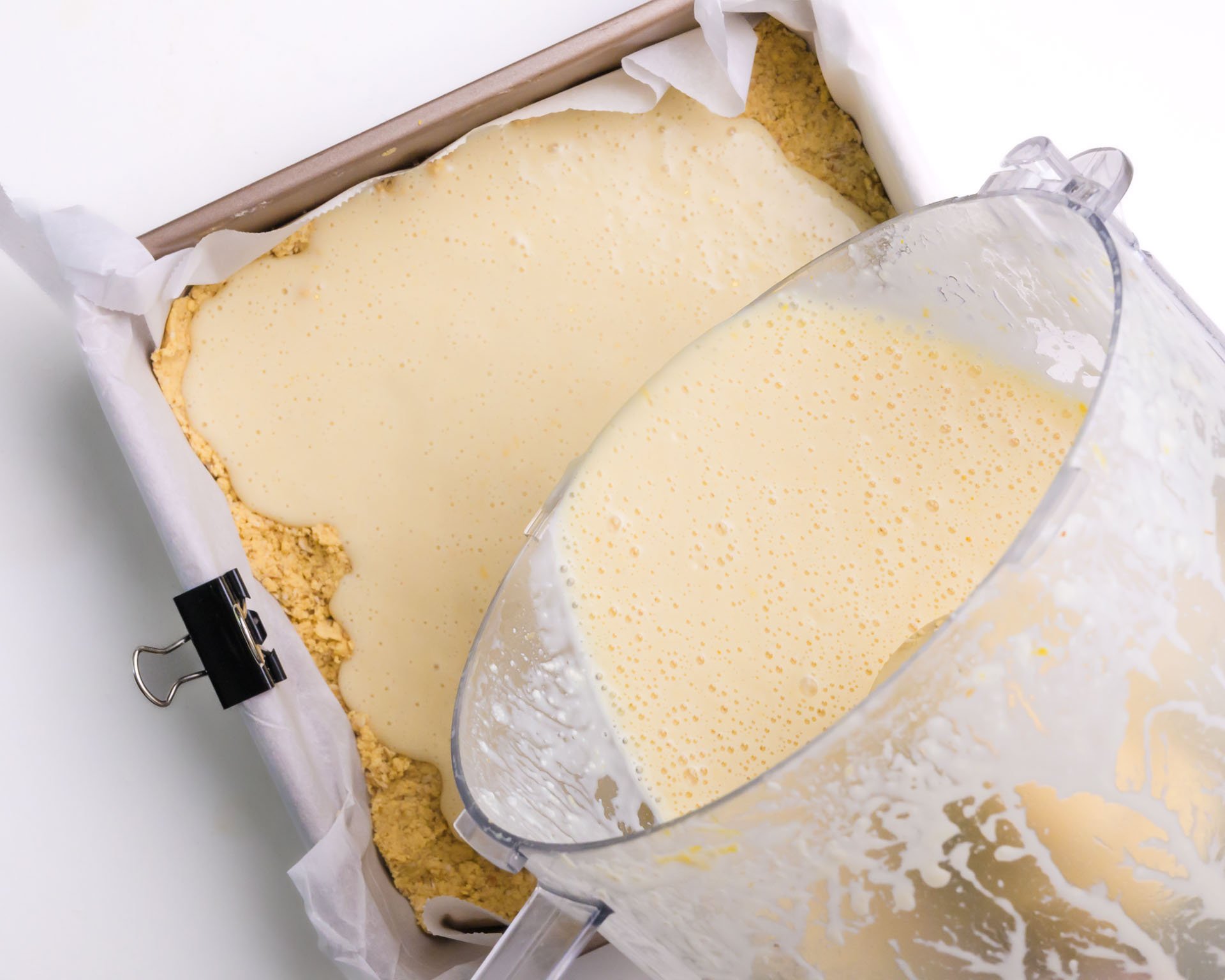 I pour the silky lemon filling over the crust, spreading it gently like frosting a cake. If you choose, sprinkling reserved crumbs on top gives it a rustic, homemade look.