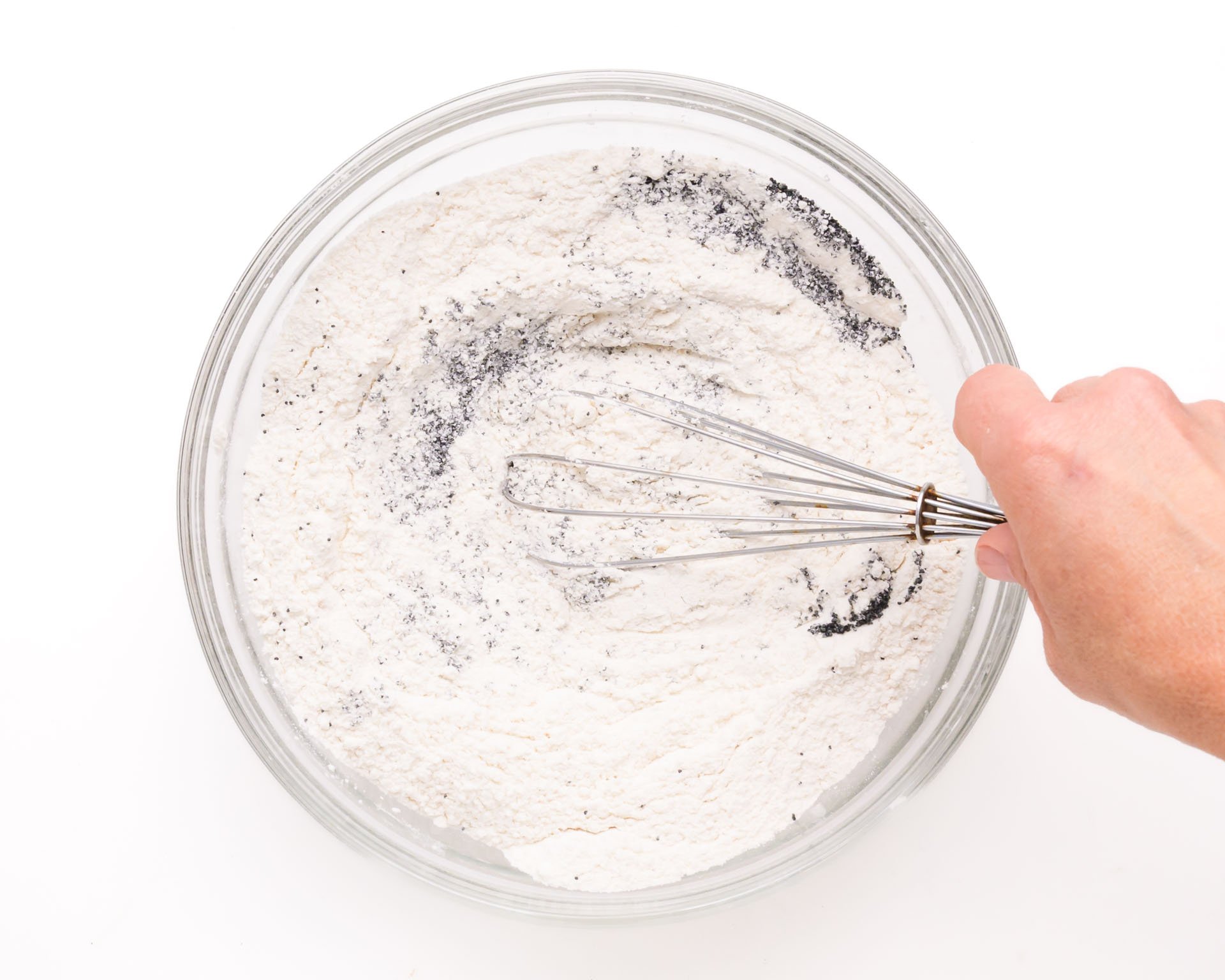 Start by whisking together your dry ingredients. This helps evenly distribute the baking soda, salt, and those beautifully toasted (or untoasted) poppy seeds.