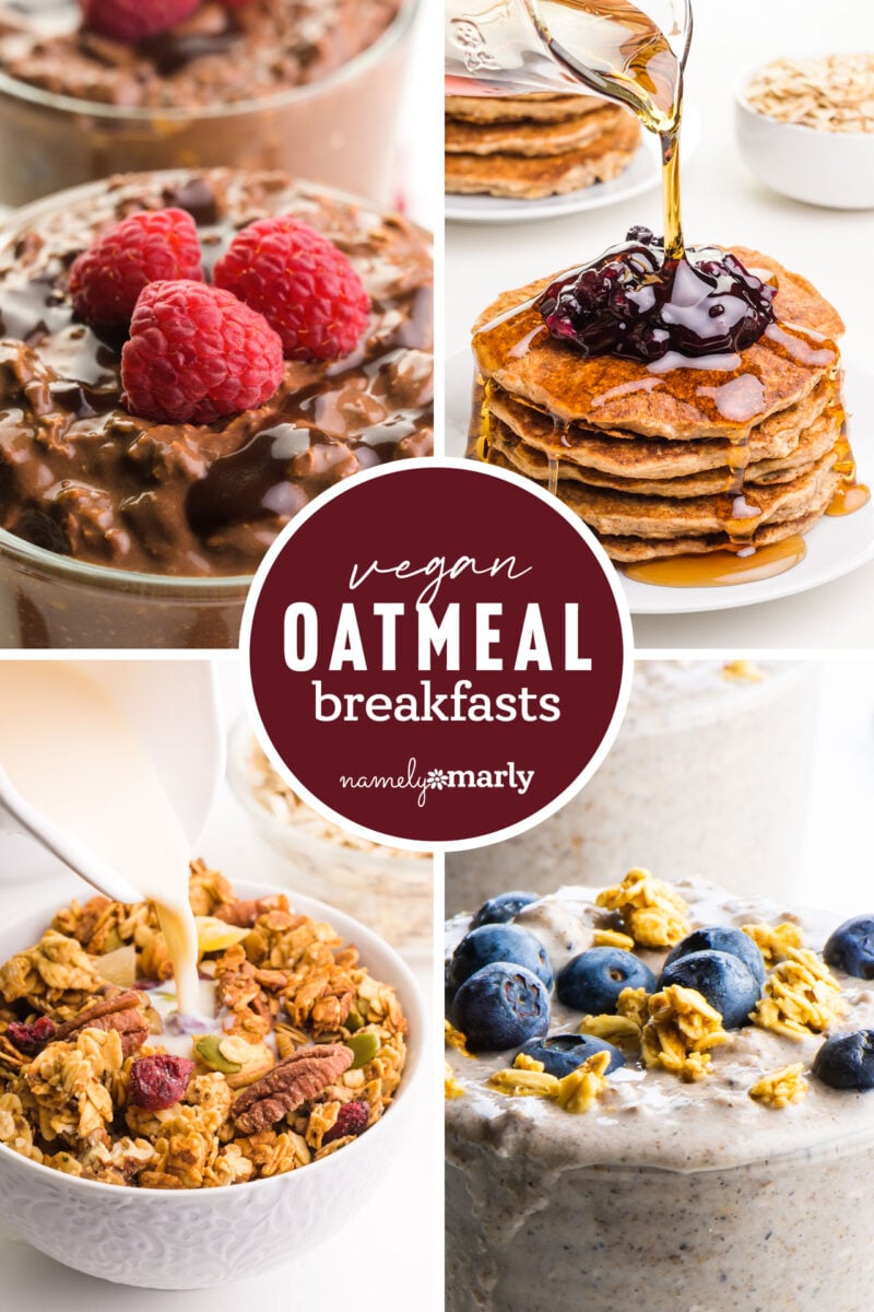 These vegan oatmeal pancakes are so healthy and full of tasty ingredients. Serve them with fruit and maple syrup for a tasty breakfast.