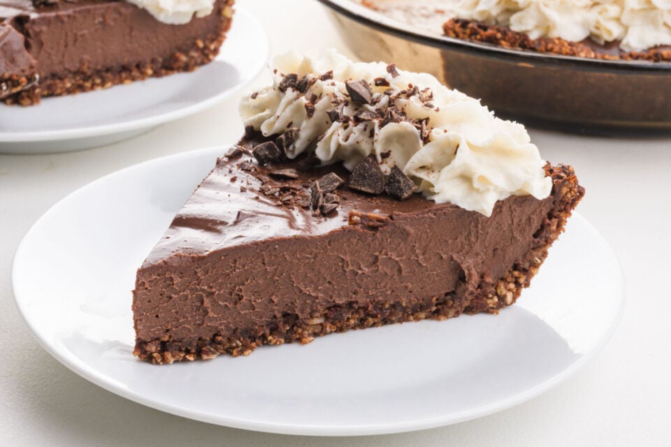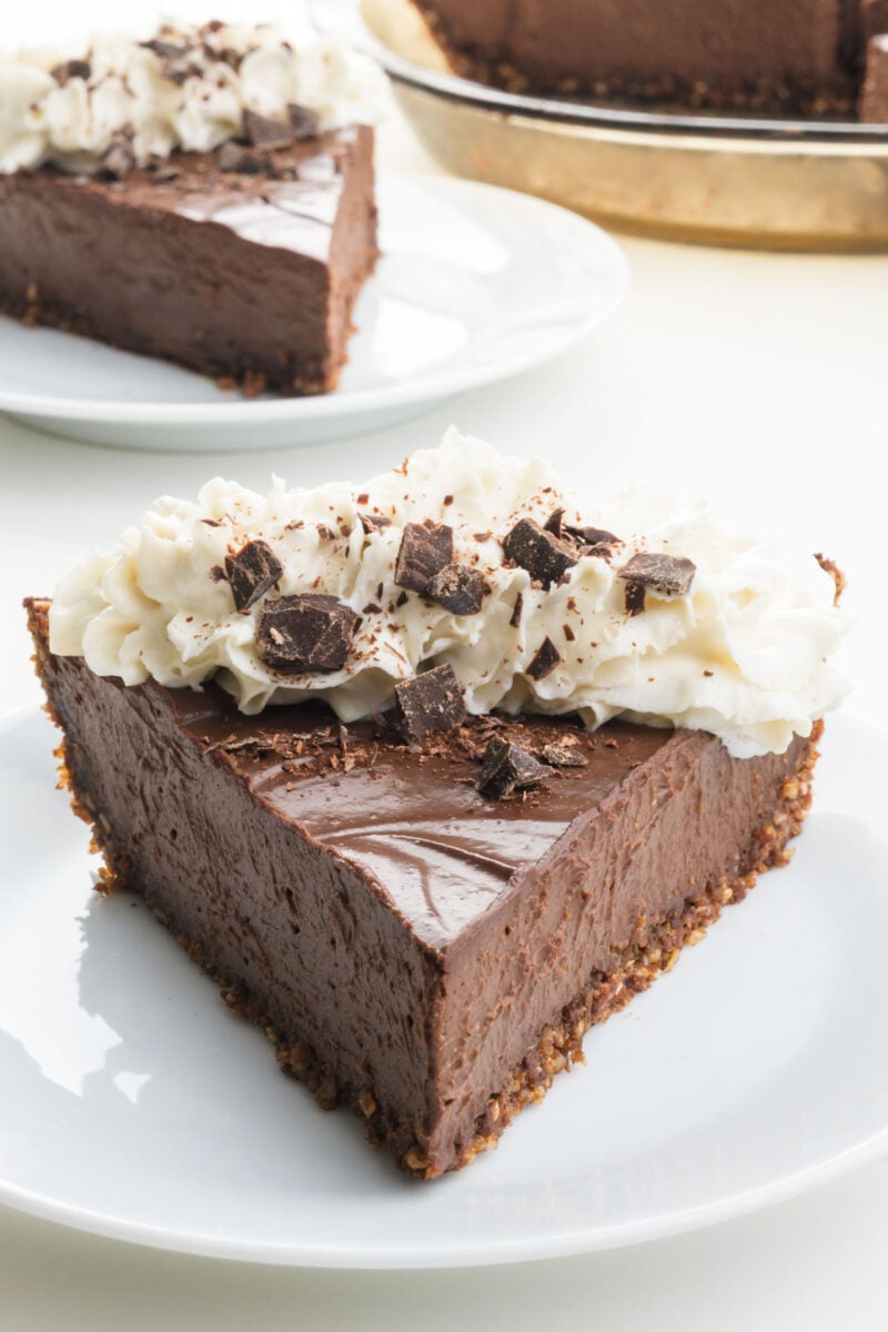 Note: You can transform this into a vegan French silk pie by adding a couple of tablespoons of vegan cream cheese to the chocolate filling. Be sure to process it so it’s equally distributed throughout the filling.